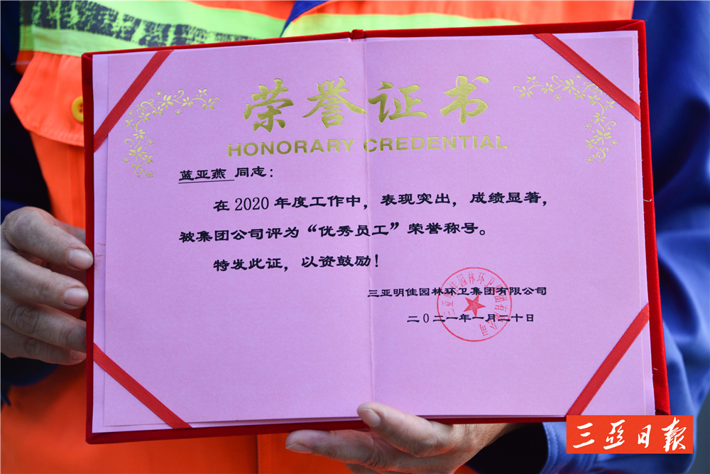 “亞燕是一個(gè)工作負(fù)責(zé)、認(rèn)真的員工,她工作讓我很放心,平時(shí)她還主動(dòng)幫助其他工人,累活也搶著干?!泵骷循h(huán)衛(wèi)天涯一隊(duì)隊(duì)長林海菊這樣評(píng)價(jià)藍(lán)亞燕。